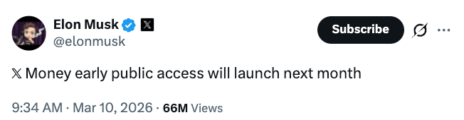 Apesar das críticas, Musk afirmou que o lançamento do X Money acontecerá em abril.