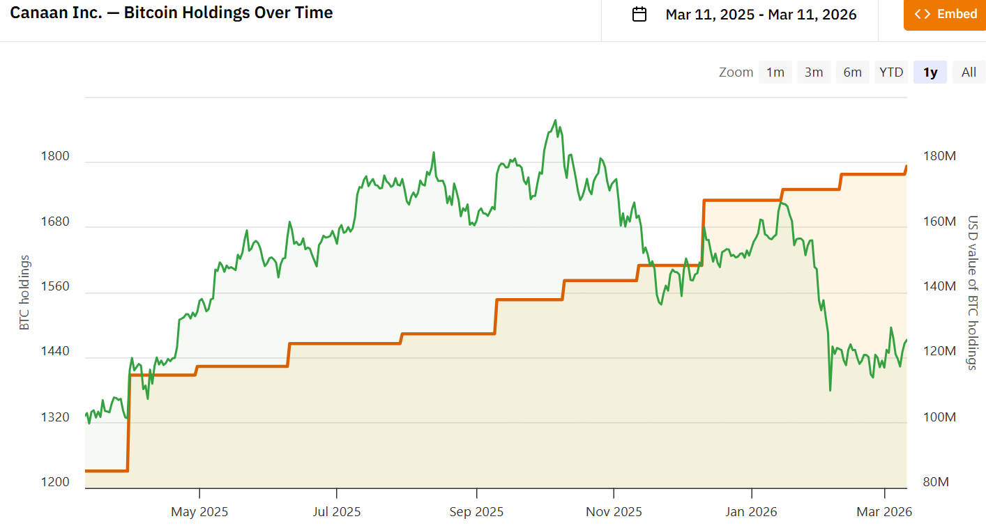 A mineradora de Bitcoin Canaan está aumentando sua reserva em meio a um mercado desafiador, enquanto muitos concorrentes estão vendendo. A empresa extraiu 86 BTCS em fevereiro, aumentando seu total para 1.793 BTC, além de possuir 3.952 Ether (ETH).