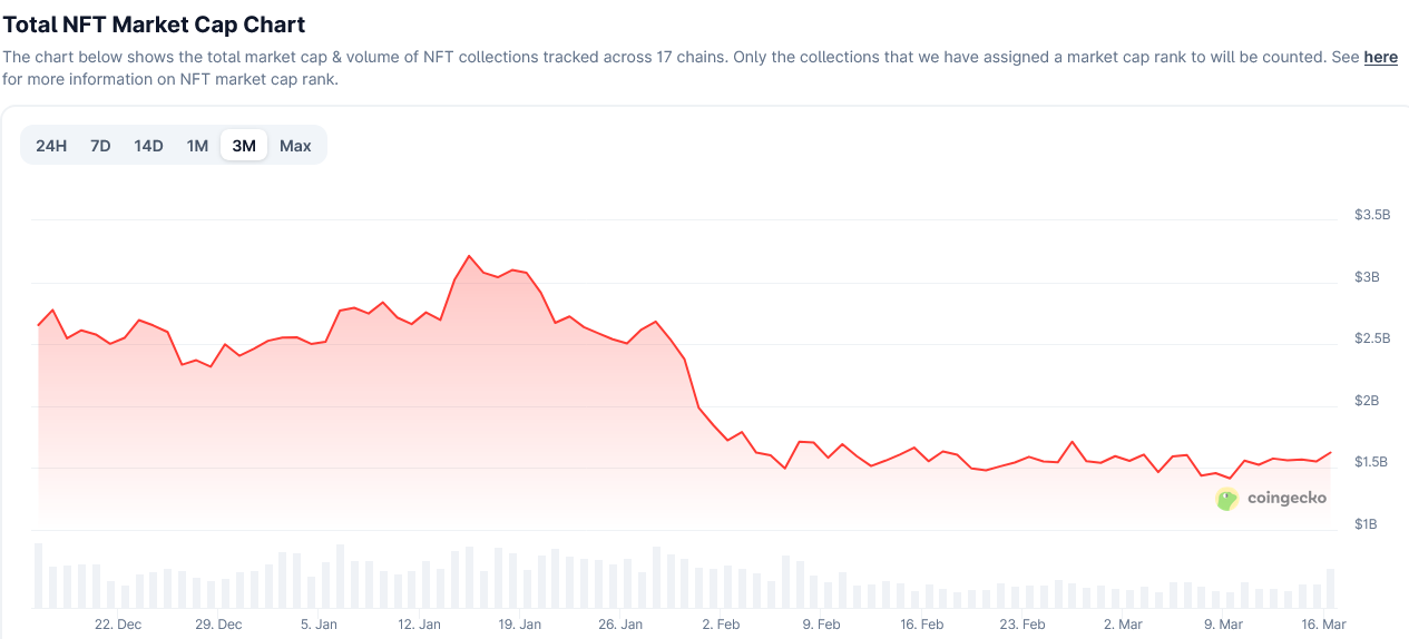 Mudança no valor de mercado de NFT nos últimos três meses. Fonte: CoinGecko